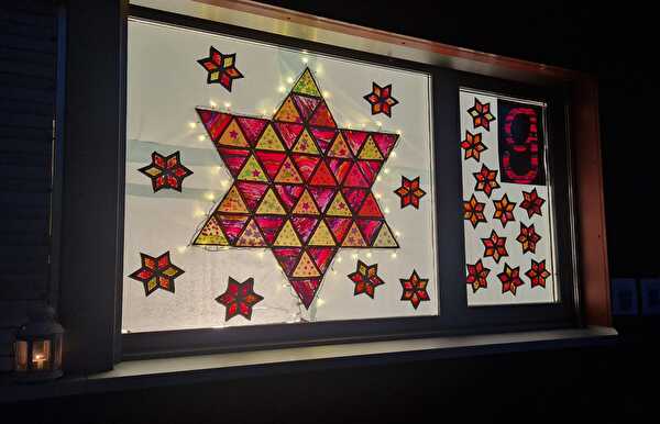 In diesem Jahr durften die Kindergartenkinder das Adventsfenster für den 9. Dezember mit viel Freude und Kreativität gestalten. Aus vielen einzelnen, bunt verzierten Dreiecken entstand ein grosser, strahlender Stern. Jedes Kind trug mit seinen eigenen Dreiecken dazu bei, dass das gemeinsame Kunstwerk wächst. Im dunkeln erstrahlt der Stern beim Kindergarten und sorgt für eine lichterfrohe Adventszeit.
